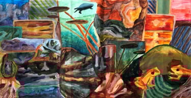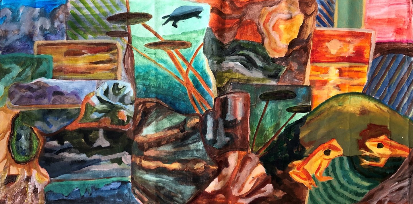 Collage, 2020. 16"x31". Acrylic on Canvas.