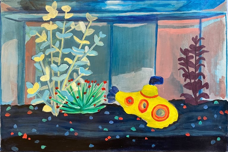 Fishtank, 2021. 14"x11". Acrylic on Paper.