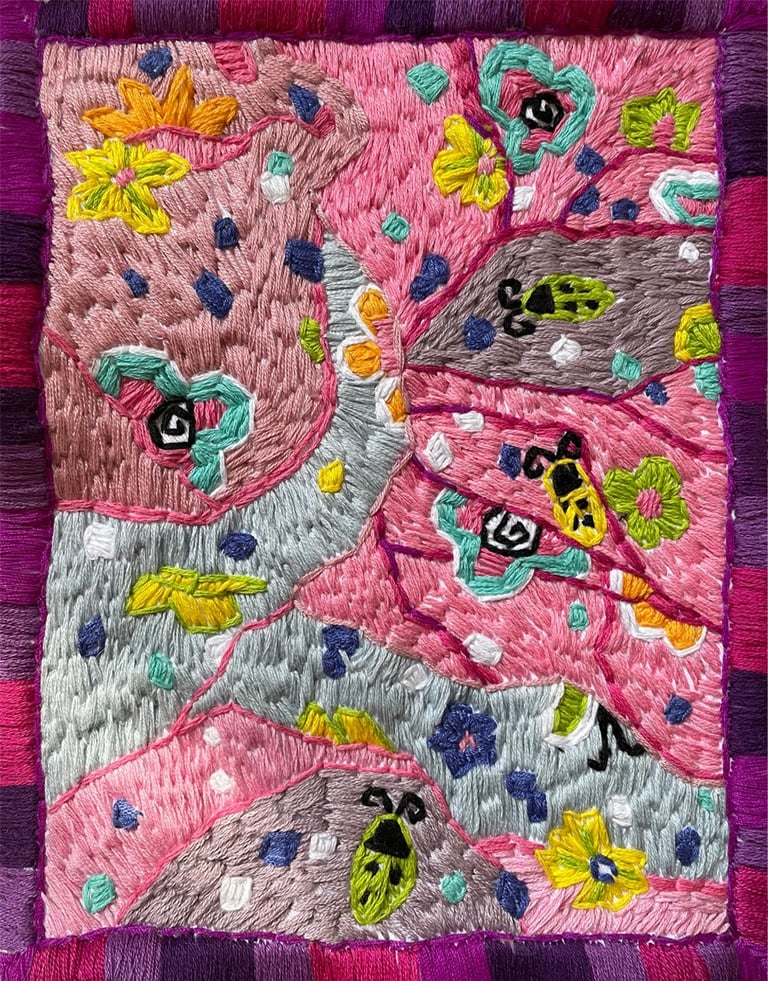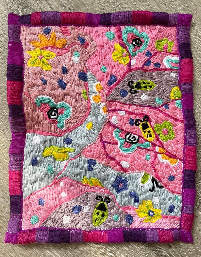 Just a Girl, 2021. 6"x9". Hand embroidery on cotton.