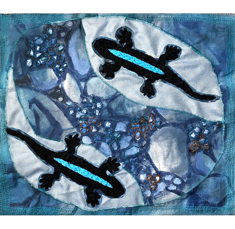 Spiral (pt.2), 2021. 12"x10". Hand embroidery and acrylic paint on cotton.