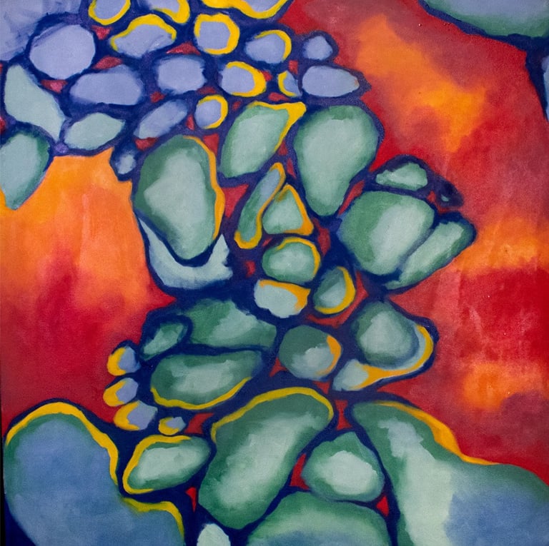 Stones, 2019. 32"x36". Oil on Canvas & Hand-built frame.