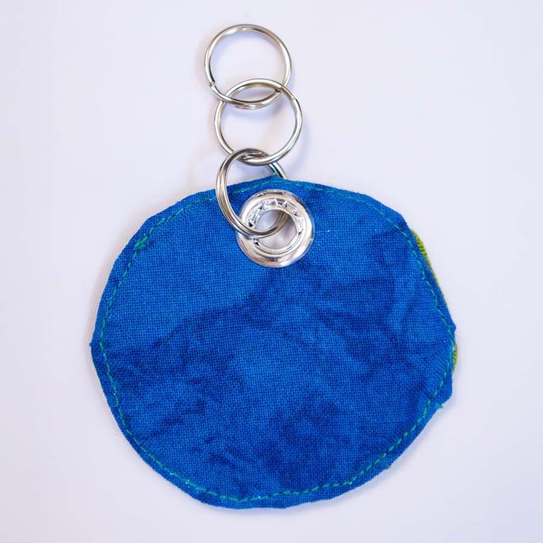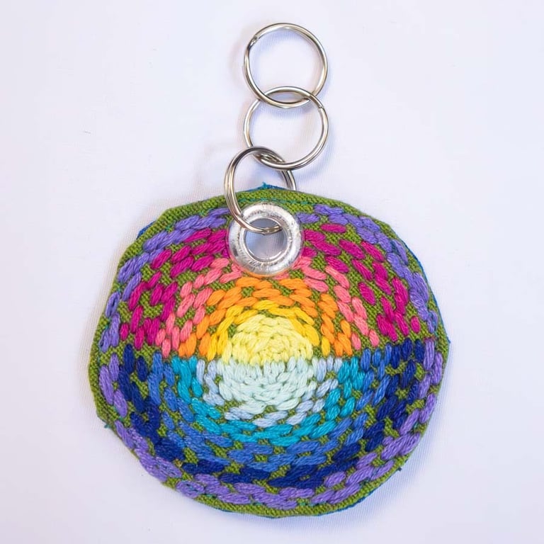 Sunset Keychain (no.1), 2025. 2.5"x2.5". Hand embroidery on cotton.