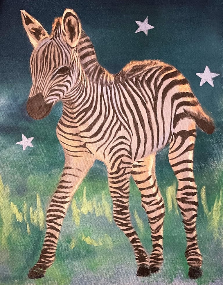 Zebra, 2020. 11"x14". Oil on Canvas.
